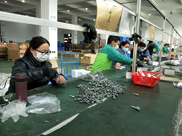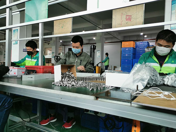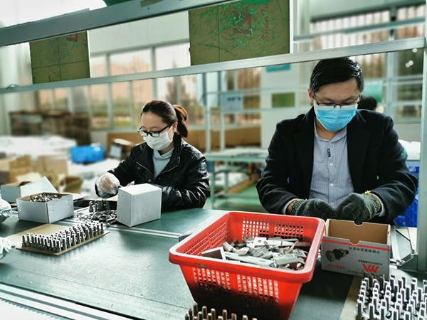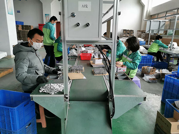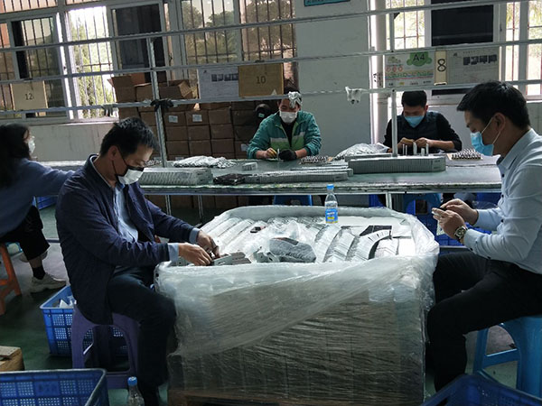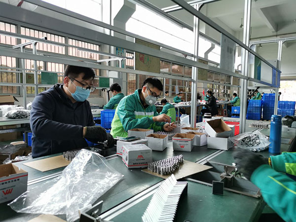 企业复工后,重点岗位人员基本到岗,工人们戴着口罩,动作麻利地加工,包装,出库。整个产线分工明确,井然有序,有速度有质量,从而保证客户订单都可以及时出库。