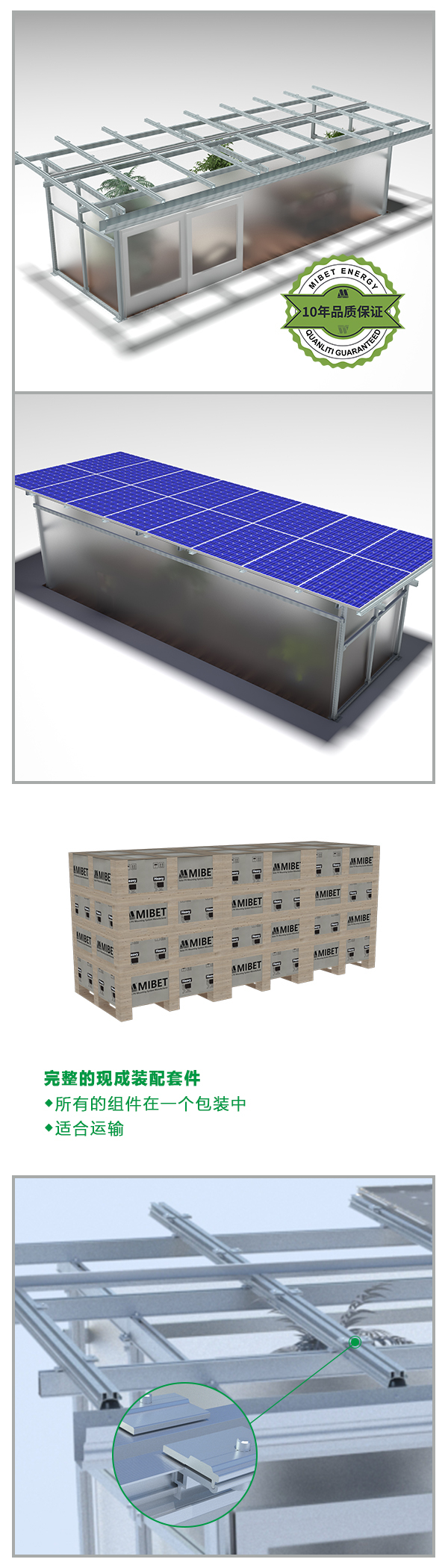 MRac 阳光房光伏防水支架系统 是一款设计中融合了艺术的夸张手法,运用科学的诠释突破,透露出时尚的风情,利用光伏发电系统安置于阳光房顶,不但能够起到良好的透光性,还能将太阳能转化为电能,自发自用、余电上网,体验既遮阳又发电的科技环保生活,实现了居室和阳光的亲密接触,光伏阳光房目前已经成为现代人追求自然、亲近自然的生活时尚!